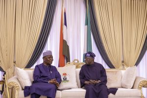 President Bola Tinubu receives Gen. Yakubu Gowon (Rtd), former Head of State, during a visit to the State House, Abuja, Saturday, March 14, 2026.