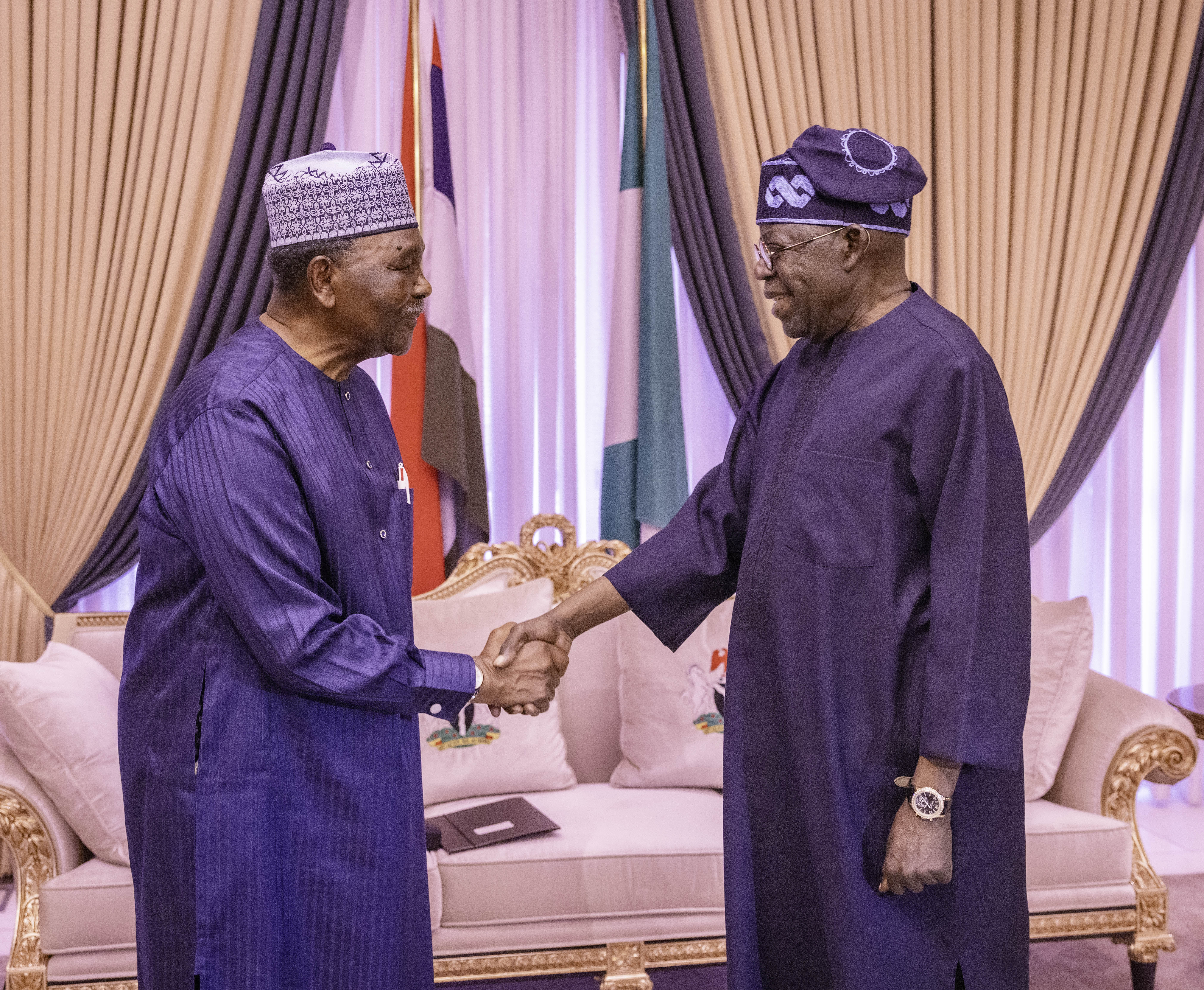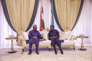 President Bola Tinubu receives Gen. Yakubu Gowon (Rtd), former Head of State, during a visit to the State House, Abuja, Saturday, March 14, 2026.
