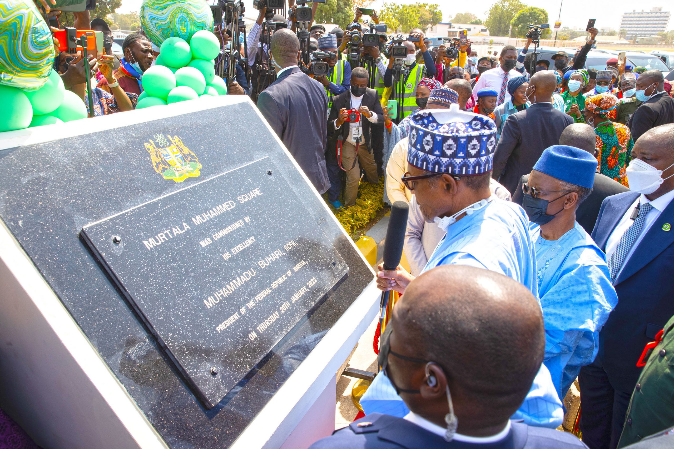 President Buhari commissioned newly reconstructed Murtala Muhammed Square, Kawo Flyover and AMA Medical Manufacturing Company, and other major projects of the Kaduna State Government, in Kaduna.