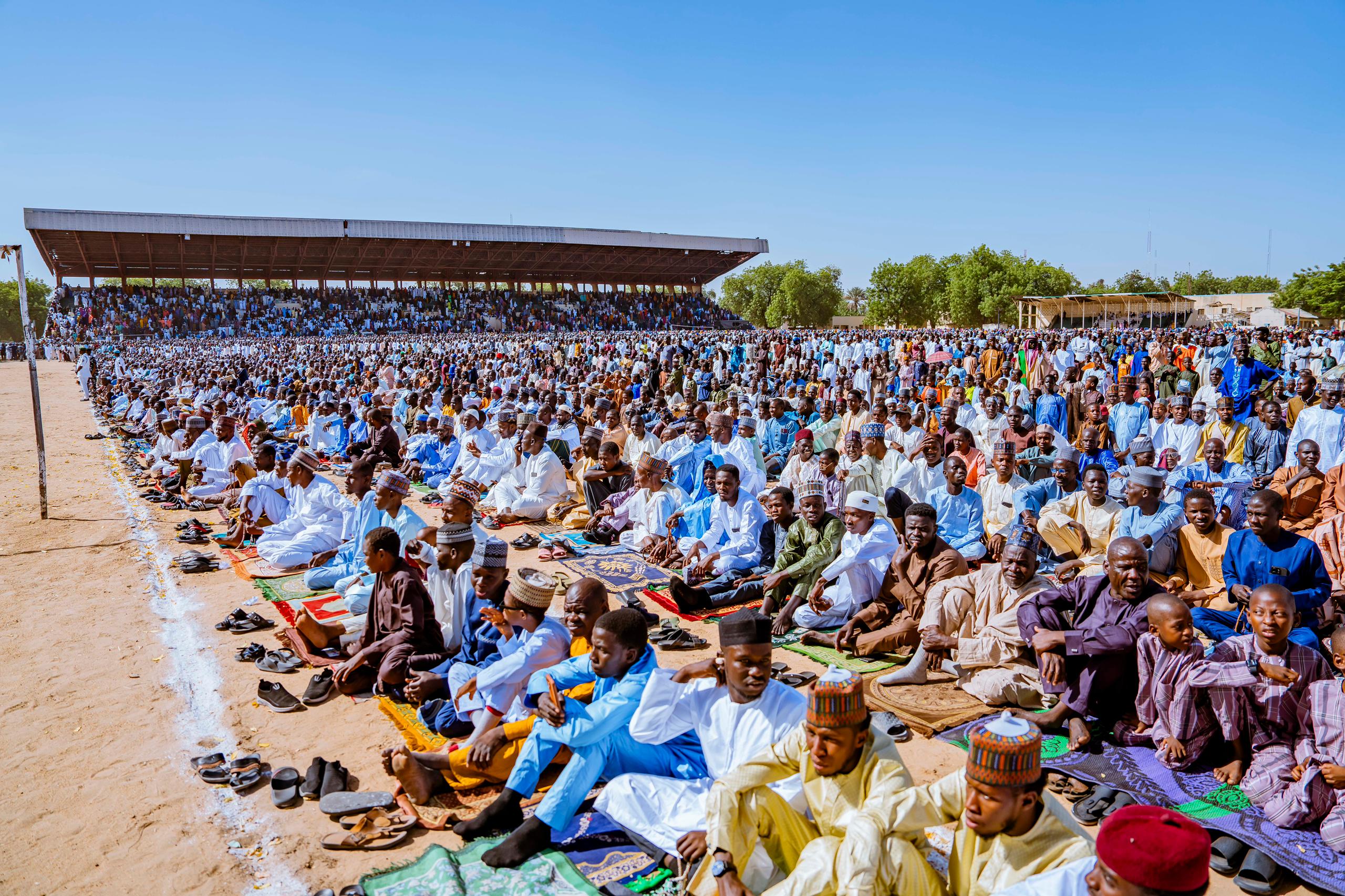 VP Shettima observes Eid-el-Fitr prayers at Ramat Square in Maiduguri, Borno State.